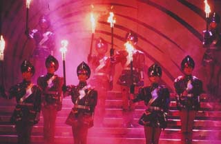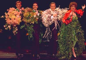 | Bas Groenenberg, Frank Sanders, Jos Brink and Lucy de Lange as Spring, Autumn, Winter and Summer in Jos Brink's revue 'Er wordt gestrooid'. | Nazi scene from the musical 'Madame Arthur' by Jos Brink. |